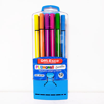 Estuche de pasta X 12 plumones triangulares, de punta suave y resistente para niños y jóvenes, útiles para trabajos artísticos.